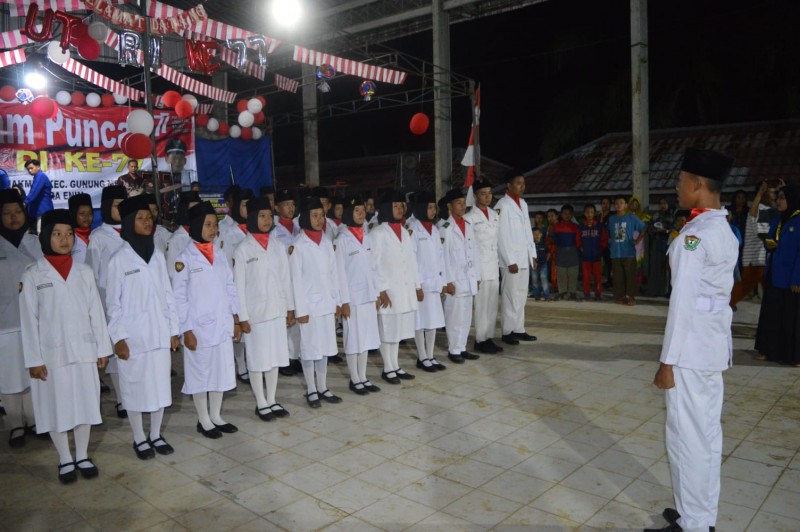 "Kalian semua sudah memberikan yang terbaik menurut kami, mulai dari pengibaran bendera, penurunan bendera hingga karnaval dengan di bawa bimbingan babinsa sumaja makmur. Tiada kata dan ucapan yang bernilai hanyalah ucapan do'a menyertai kalian semua, semoga kalian nantinya bisa membawa nilai-nilai luhur kebangsaan, dan menjunjung tinggi ketuhanan yang maha Esa. Do'a kami kelak bisa mencapai sekolah lebih tinggi, dan apa-apa cita kalian bisa terwujud," ungkap Kades.