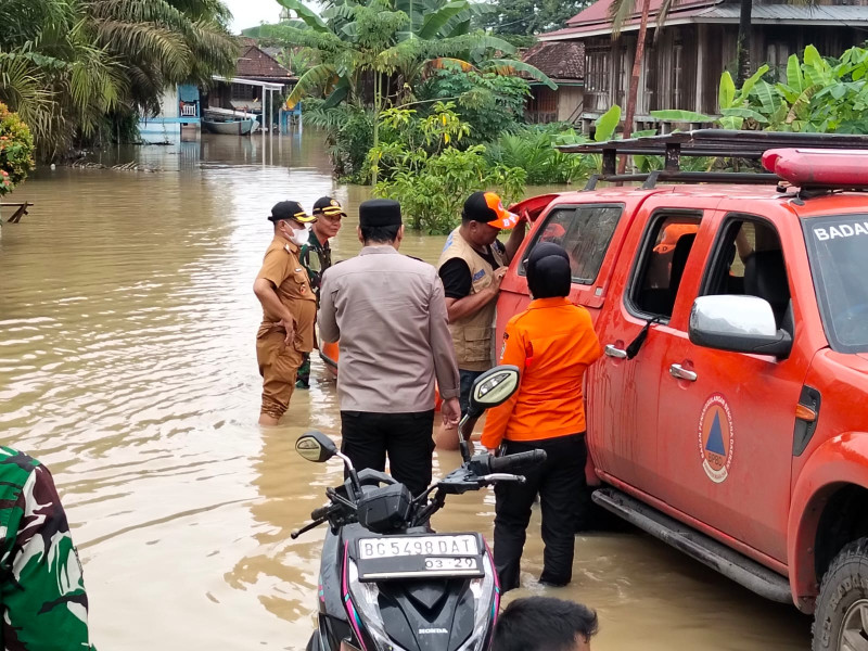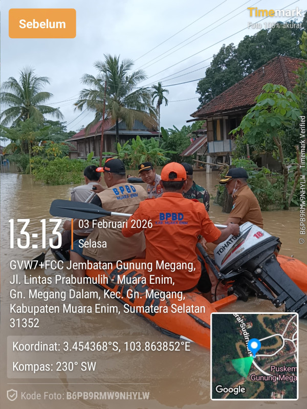 Camat Gunung Megang bersama unsur Tripika lainnya bersama Badan Penanggulangan Bencana Darurat (BPBD) meninjau beberapa desa yang terdampak banjir.